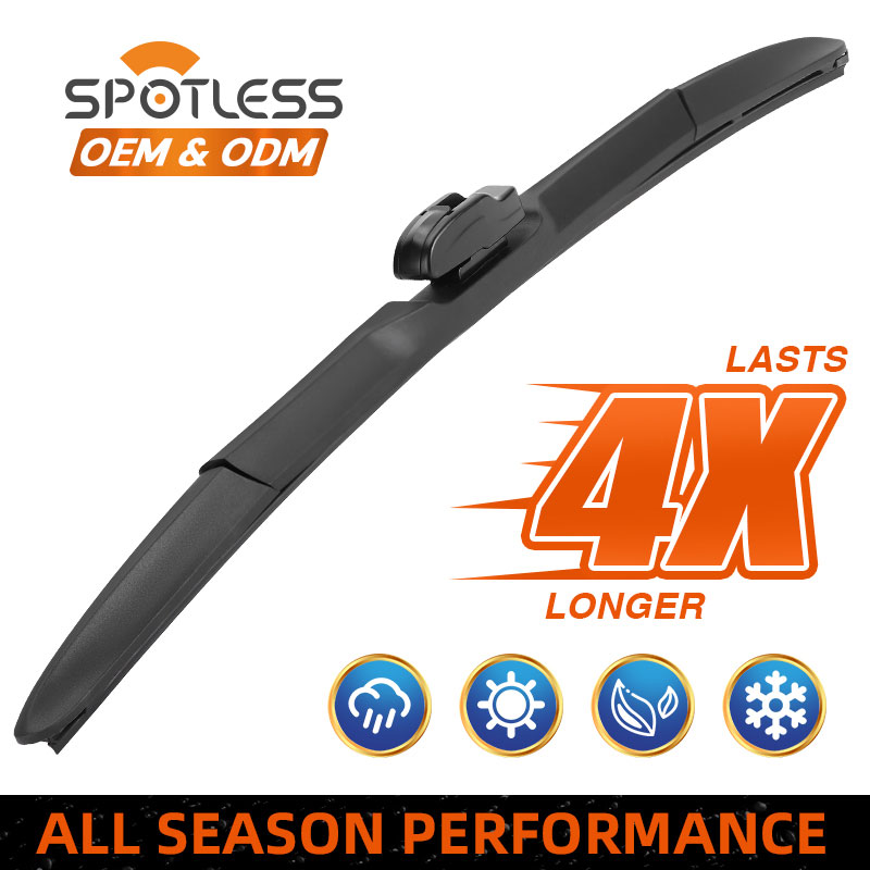 SPOTLESS, a professional factory of hybrid front wiper, solves common winter freezing, adapter mismatch, noise, and short lifespan issues. Our three‑section structure with durable rubber and 18 adapters fits 99% of vehicles. IATF 16949 certified, ideal for B2B bulk supply, customization, and low after‑sales cost.