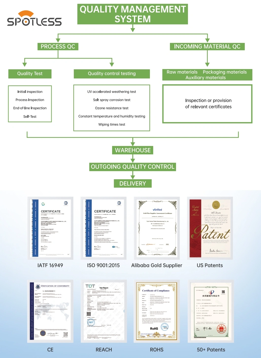 IATF 16949, ISO 9001, ROHS, REACH, CE, 50+ Patents, etc |